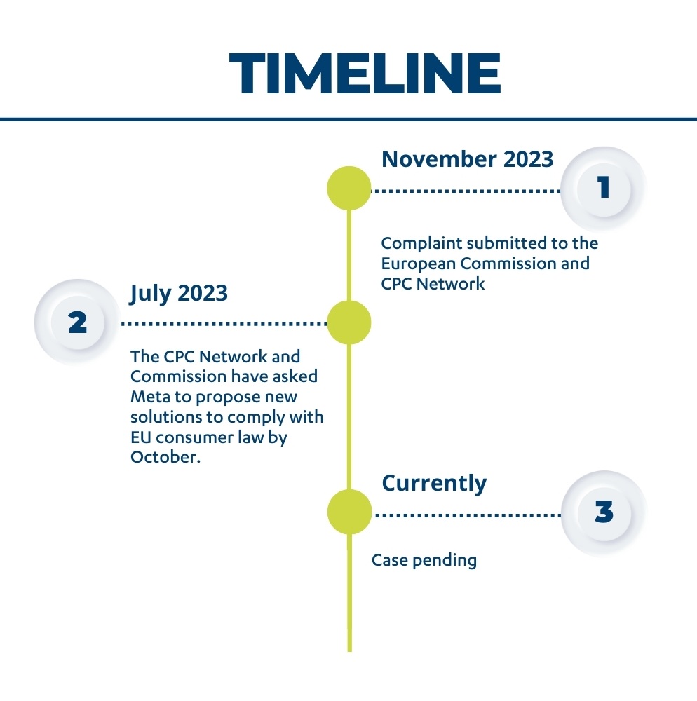 BEUC has filed a complaint with the network of consumer protection authorities (CPC) on grounds of Meta engaging in unfair commercial practices in multiple ways: