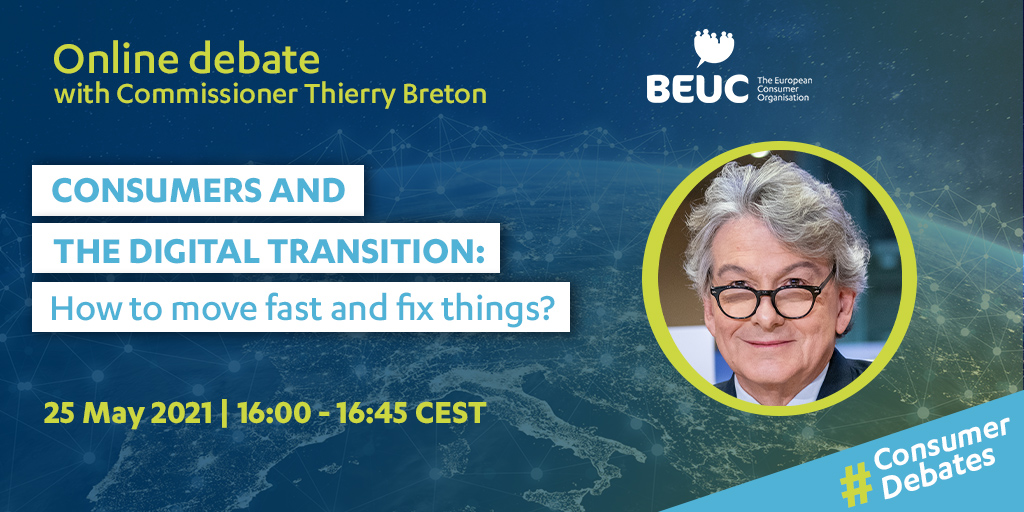 As the EU is debating the rule-setting for the digital world for the next decade, our Director General Monique Goyens will speak to Internal Market Commissioner Thierry Breton about the place of consumers in this digital transition.
