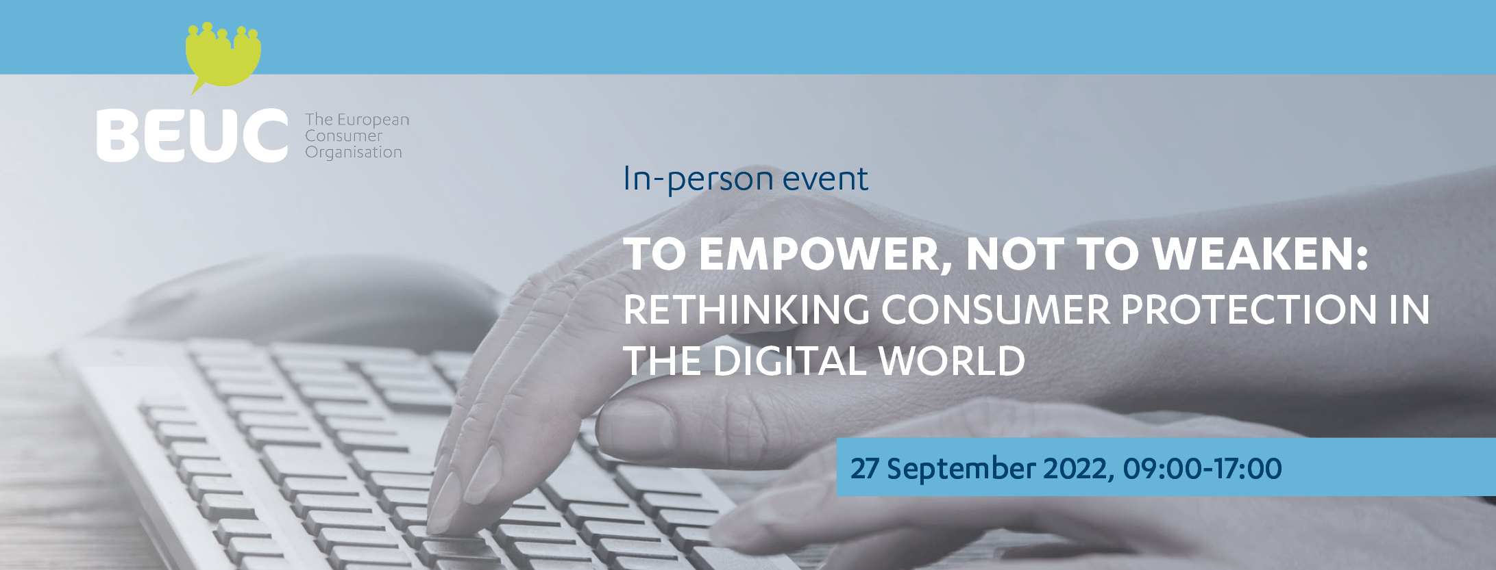 Join us on 27 September 2022 in Brussels to discuss how we can rethink consumer protection in the digital age. We will look in-depth at the regulatory changes needed to tackle digital asymmetries in many areas of consumer and digital regulation (consumer law acquis, AI Act, Data Act etc) and its enforcement structures.