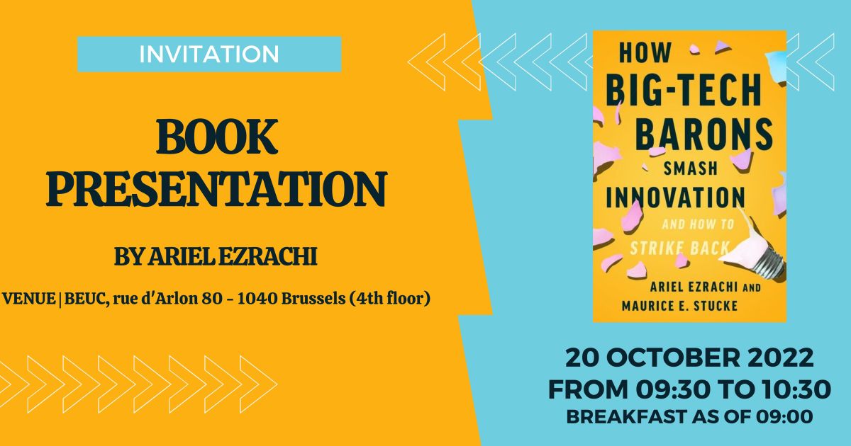 Professor Ariel Ezrachi of Oxford University will present his latest book which deconstructs the drivers and inhibitors to innovation in the digital economy, explains how large tech companies can stifle disruption, assesses the toll of their technologies on our well-being and democracy, and outlines policy changes to take power away from big tech and return it to entrepreneurs.