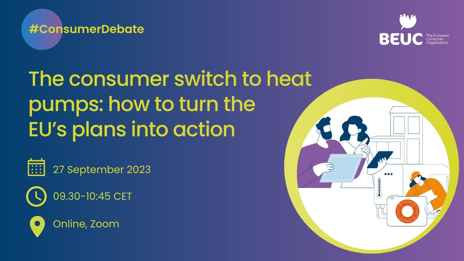 In this latest instalment of BEUC’s #ConsumerDebates events, we will present the findings of our heat pump ‘mystery shopping’ project, looking into the practical difficulties consumers may face when shifting to green heating. This will be followed by a panel debate on how to ease the transition to heat pumps for consumers.