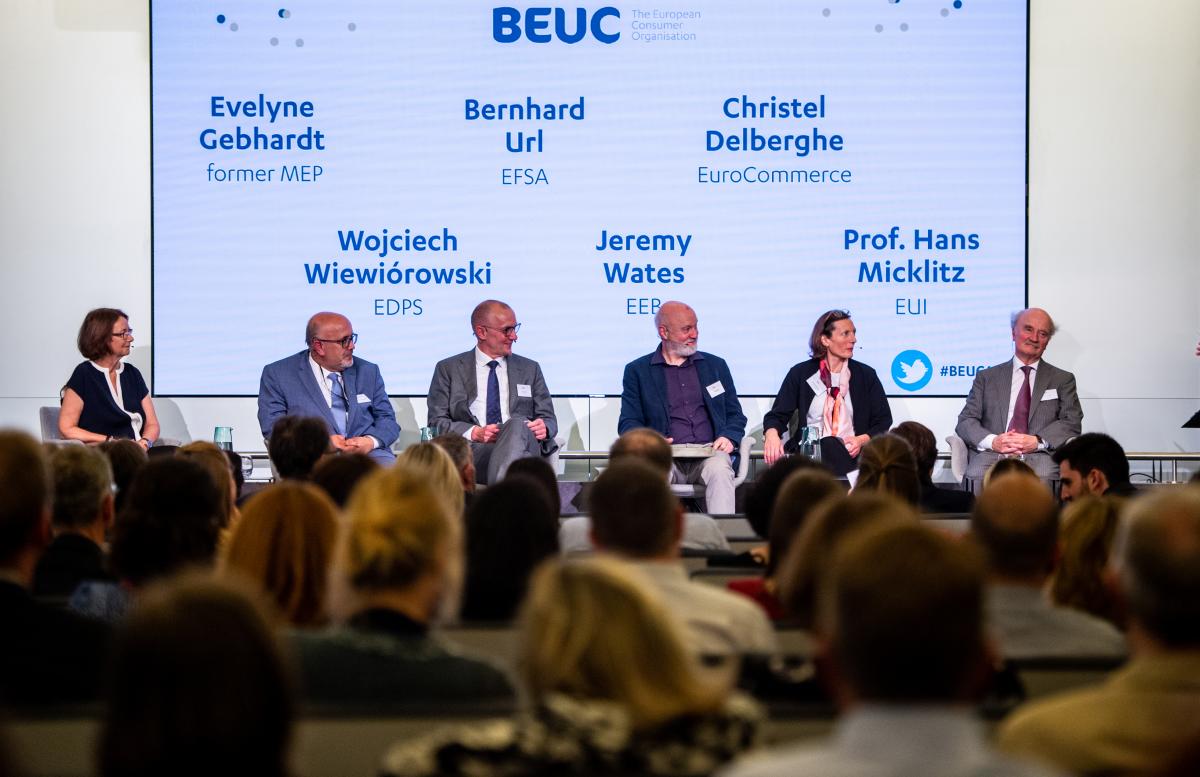 It was followed by a lively panel about ‘BEUC as a partner’, with six guests representing EU institutions, civil society, industry and academia. Panellists exchanged about how they have been cooperating with BEUC over the years, highlighting what they think are the main challenges for consumer groups. They were Christel Delberghe (Director General of EuroCommerce), Evelyne Gebhardt (former Member of the European Parliament), Bernhard Url (Director of the European Food Safety Authority), Jeremy Wates (Secretary General of the European Environmental Bureau), Wojciech Wiewiórowski (European Data Protection Supervisor), and Prof. Hans Micklitz (Professor of Economic Law at the European University Institute).