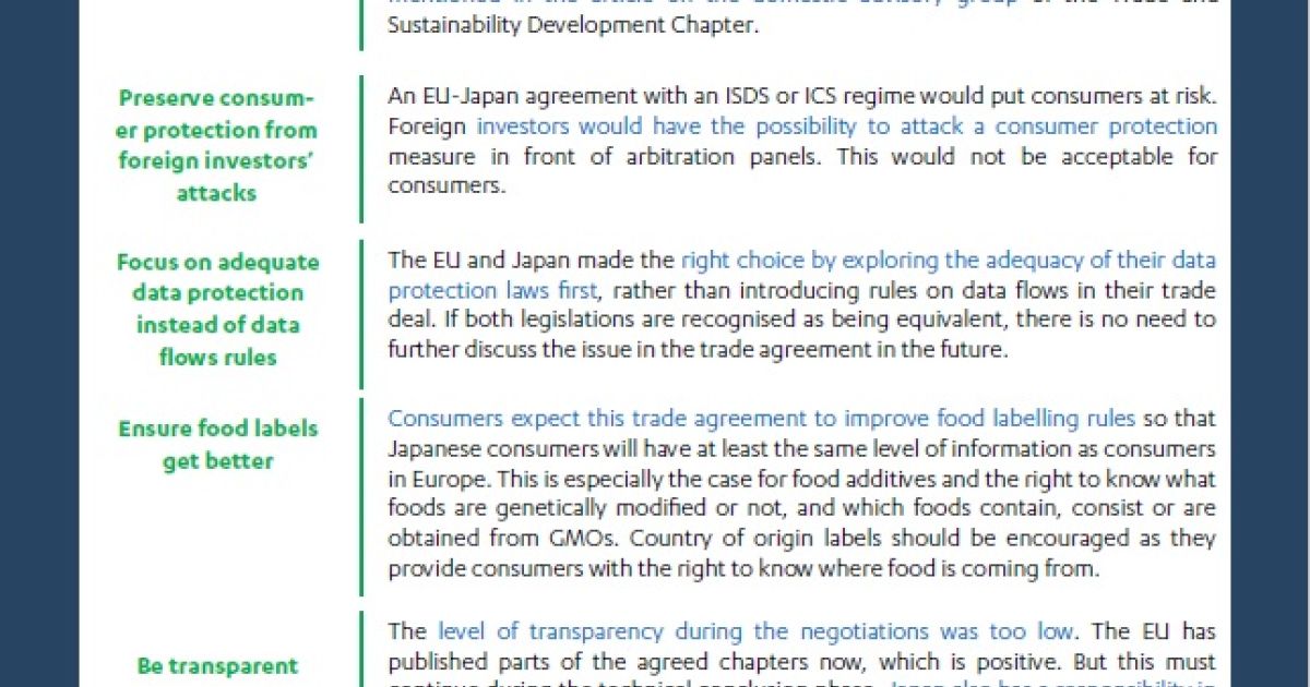 Consumer organisations urge EU-Japan trade negotiators to deliver for consumers