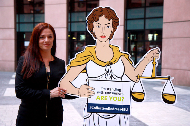 Our campaign involves getting as many MEPs as possible to stand with a cut-out of Lady Justice herself calling for collective redress. How many can we get? Check the results so far by clicking on this link. We’ll be continuing this action throughout September and October.