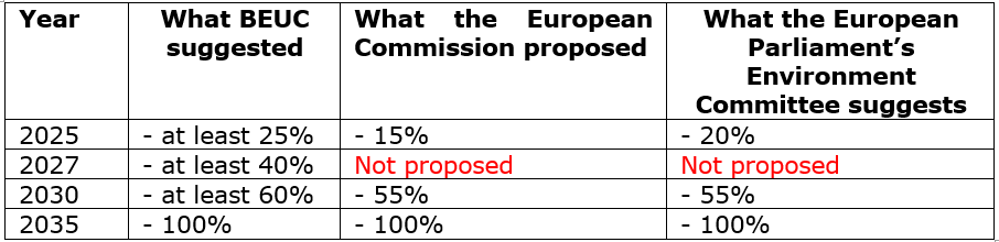 As research by the BEUC network shows, electric cars are already the cheapest option for many consumers when looking at the total cost of ownership. The CO2 reduction target dates suggested by the Environment Committee should therefore be complemented by a 2027 target, in order to give car makers continuous incentives to bring electric cars to market.