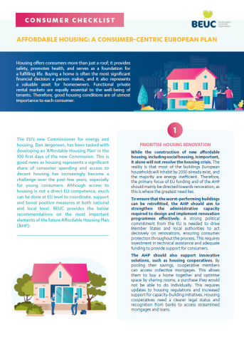 Affordable housing: a consumer-centric European plan | consumer checklist